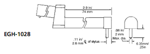 For gaging sharp edges or small O.D.’s where probe is perpendicular (in 90°- or 270° position) to axis of traverse. 90° sapphire chisel, 10 µm. / .0004“ radius. Also used with EAS-2421 Vee